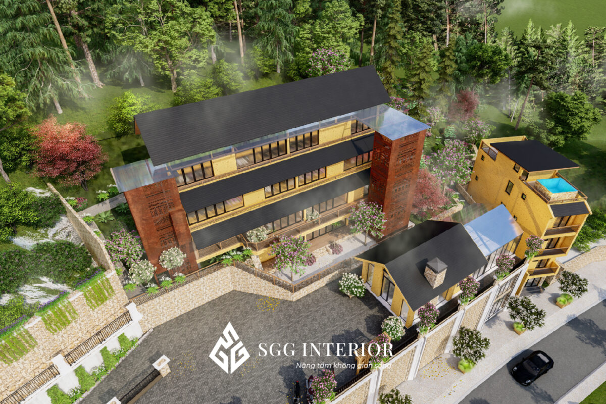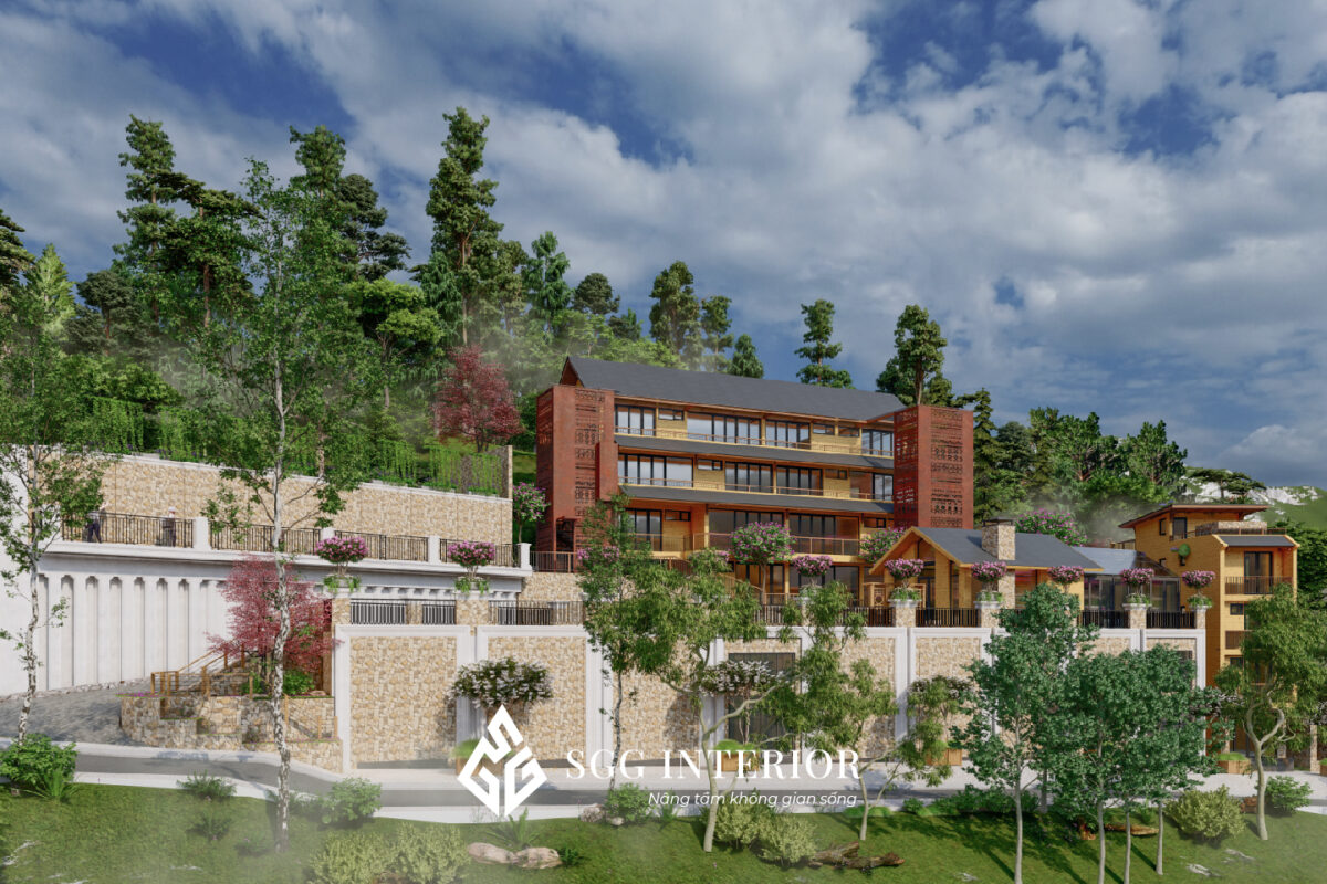 Dự án khu nghỉ dưỡng tại Sa Pa do SGG Interior thiết kế là một bản giao hưởng giữa vật liệu tự nhiên và ngôn ngữ kiến trúc đương đại. Trên địa hình dốc đặc trưng của vùng cao, dự án được quy hoạch bài bản thành 3 phân khu chức năng, tạo nên một quần thể kiến trúc vừa đồ sộ vừa tinh tế, đáp ứng đa dạng nhu cầu của khách lưu trú từ cặp đôi, gia đình đến nhóm bạn.