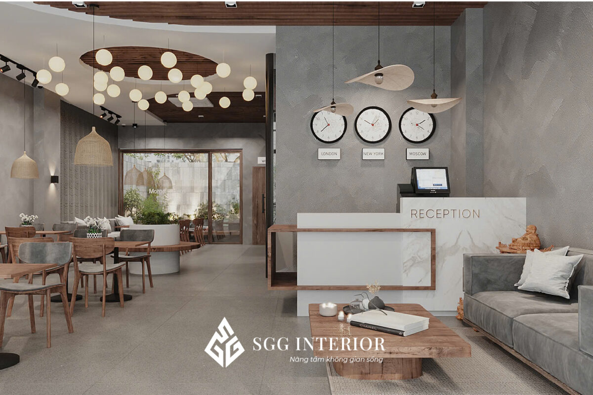 Tiếp nối vẻ ngoài ấn tượng, không gian nội thất của khách sạn tại Quảng Ninh do SGG Interior thiết kế là sự tổng hòa giữa tinh thần hiện đại, tối giản và những nét chấm phá nghệ thuật đầy bản sắc.