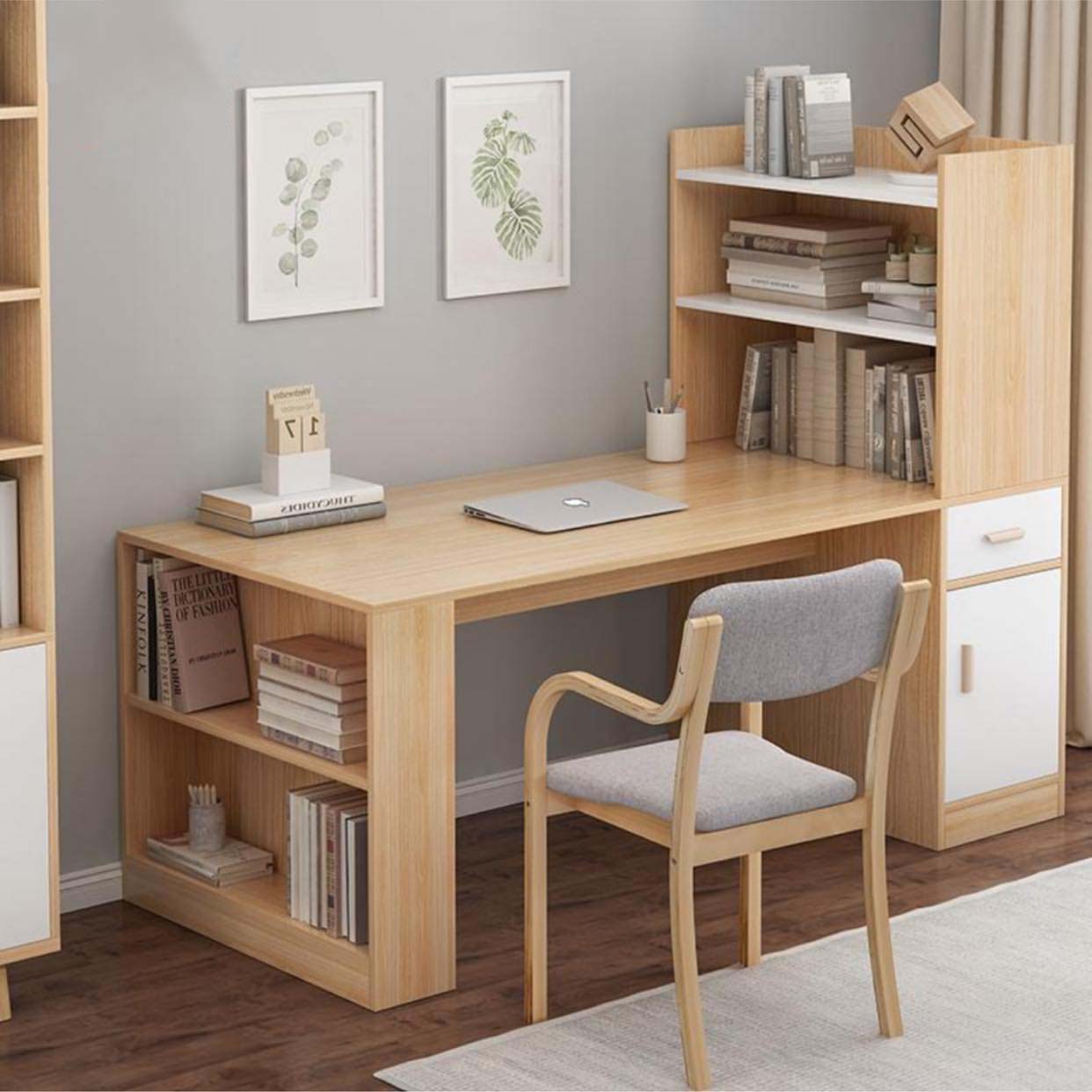 Những mẫu bàn làm việc kết hợp kệ sách, bàn làm việc gấp vào tường,….với kiểu dáng nhỏ gọn sẽ khiến căn phòng trở nên sạch sẽ, ngăn nắp hơn.