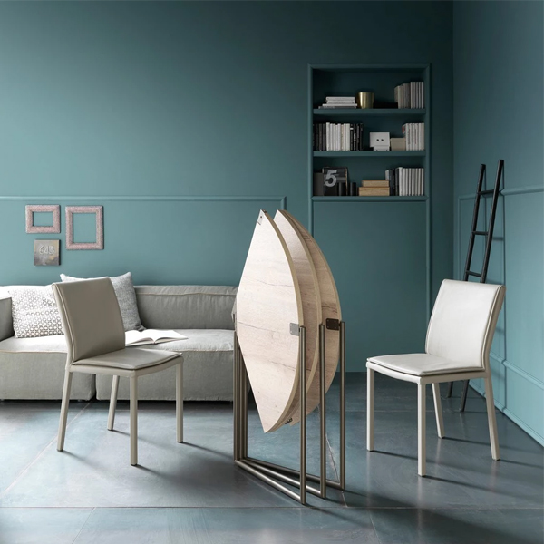 Đây là một sự lựa chọn sáng suốt và tối ưu cho những không gian chật, hẹp và nhỏ. Mẫu bàn ăn thông minh gấp gọn được thiết kế vô cùng thông minh, tiện ích, bàn có thể gấp gọn vào nhau khi không có nhu cầu sử dụng.