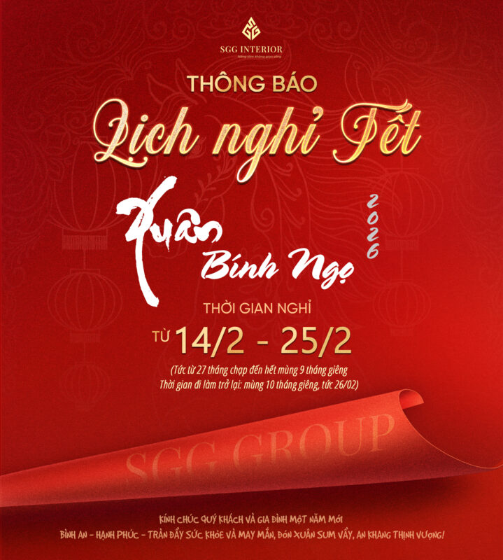 Để chuẩn bị đón một cái Tết sum vầy, #SGG_INTERIOR xin gửi tới Quý khách hàng, đối tác và Toàn thể CBNV lịch nghỉ Tết như sau: